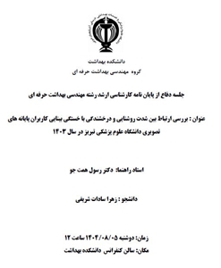 جلسه دفاع از پایان نامه کارشناسی ارشد خانم زهرا سادات شریفی در رشته مهندسی بهداشت حرفه ای ، تحت عنوان " بررسی ارتباط بین شدت روشنایی و درخشندگی با خستگی بینایی کاربران پایانه های تصویری دانشگاه علوم پزشکی تبریز در سال 1403 " به راهنمایی جناب آقای دکتر همت جو روز چهار شنبه مورخ 1404/08/05، ساعت 12 در سالن کنفرانس دانشکده بهداشت برگزار خواهد شد.